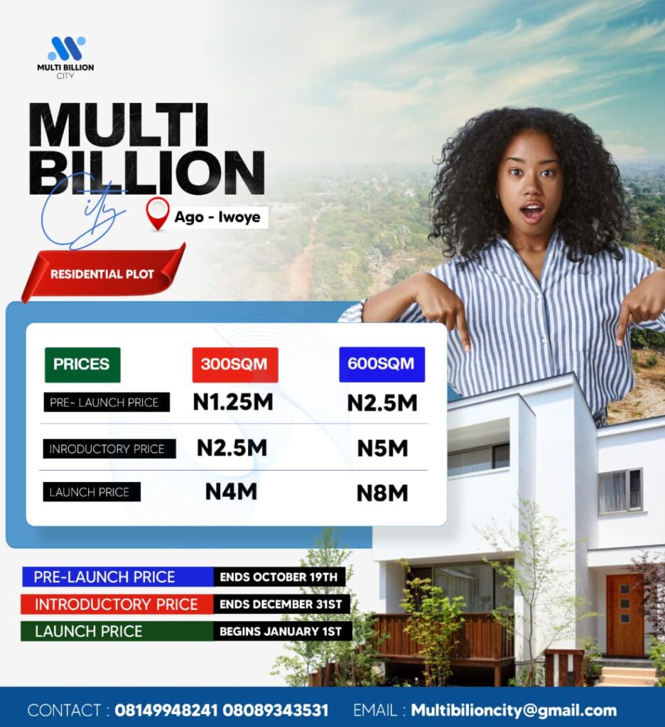 Multi Billion City has our newest residential development strategically located in Ago-Iwoye, designed to offer investors and homeowners an opportunity to own a piece of prime real estate at highly competitive rates. This estate combines comfort, accessibility, and future growth potential — making it a perfect choice for those who value both lifestyle and long-term returns.
